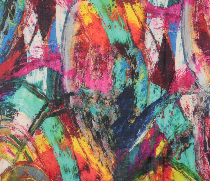 « Artiste », aux tons turquoise, fuchsia et corail, un motif abstrait audacieux qui rayonne de créativité, d’énergie et d’élégance contemporaine.