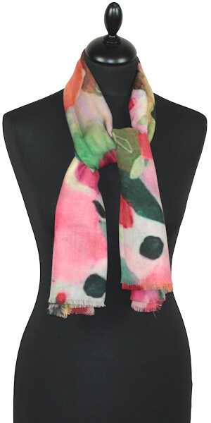 Ce grand carré en laine, doux et chaud, se distingue par ses motifs floraux lumineux et ses finitions soignées. Léger et agréable à porter, il ajoute une touche colorée et raffinée à toutes vos tenues.