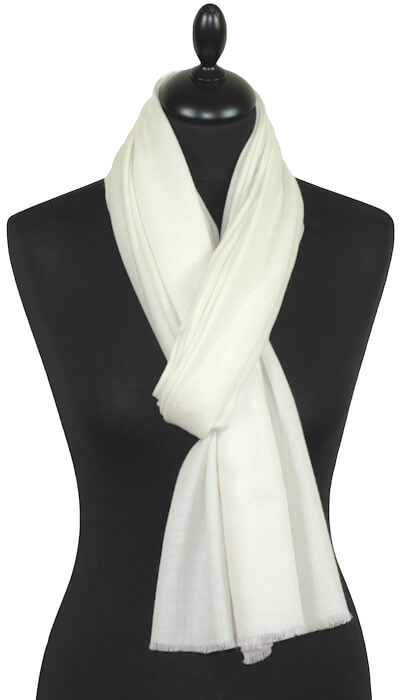 Écharpe en cachemire blanc cassé – alliance parfaite de douceur, de légèreté et de chaleur.