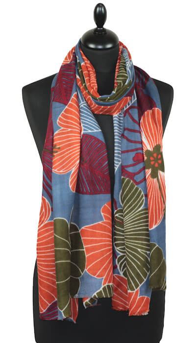Écharpe en cachemire bleu, orange et vert – alliance de douceur, chaleur et savoir-faire artisanal