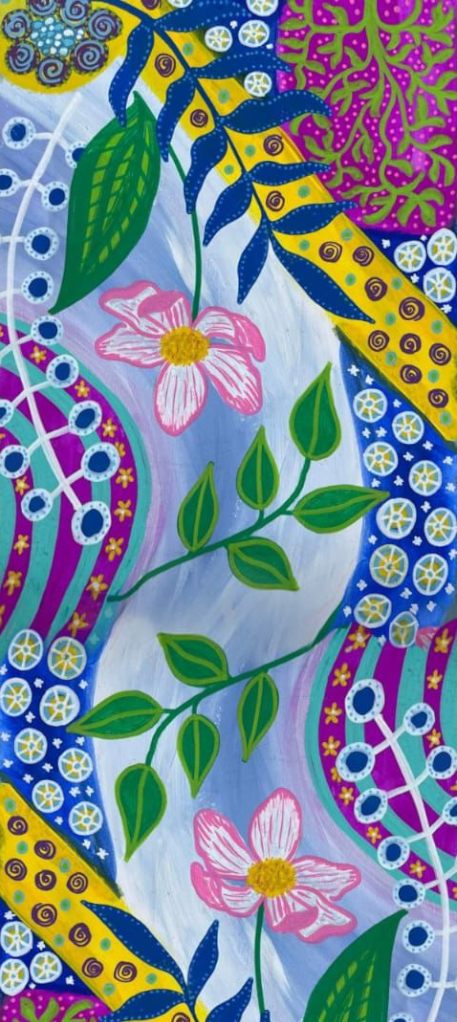 Écharpe Cachemire « Forêt Tropicale », aux tons vert, jaune et bleu, inspirée par la luxuriance et la vitalité d’une forêt tropicale.