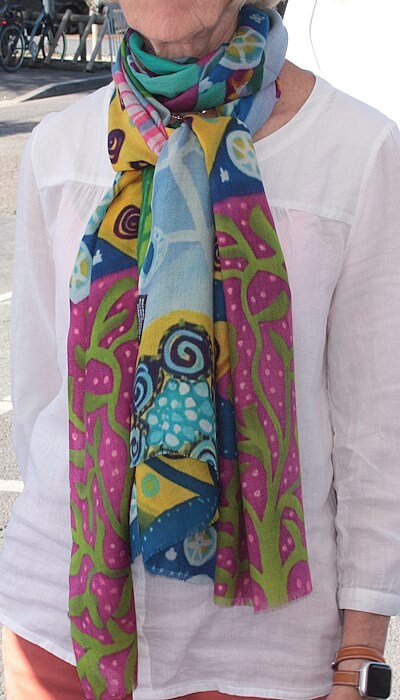 Ce modèle unique, disponible exclusivement sur notre site, est imprimé de manière artisanale à l’aide d’une presse indienne. Chaque écharpe, avec son motif unique, est produite en petites séries, et les subtiles variations de couleur entre les lots ajoutent une touche d'authenticité, faisant de chaque pièce un modèle véritablement unique.