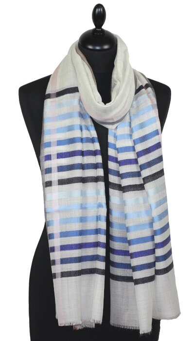 Cette écharpe écru unique allie la laine précieuse des moutons des montagnes de l’Himalaya à la douceur soyeuse de la soie d’Inde. Sa couleur naturelle, sublimée par des bandes de soie chatoyantes, apportera chaleur, élégance et éclat à toutes vos tenues, que ce soit au quotidien ou pour une occasion spéciale.