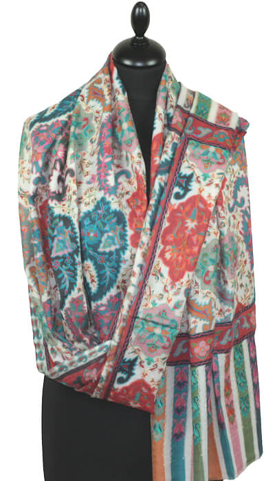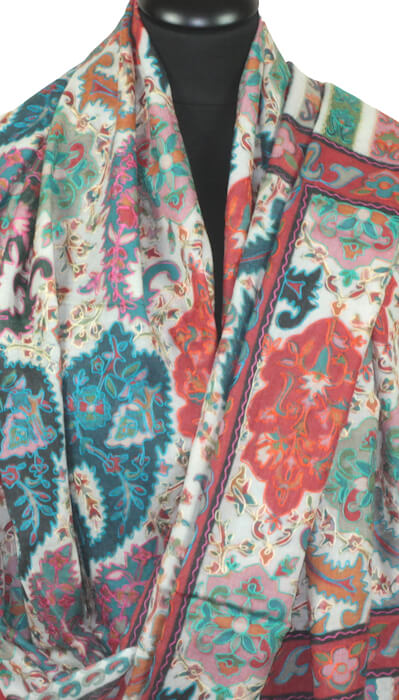 Étole en cachemire blanc cassé à motifs floraux brodée – L’élégance raffinée d’un savoir-faire traditionnel