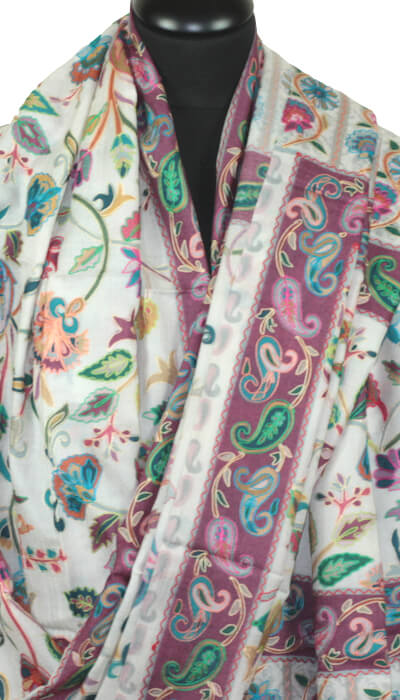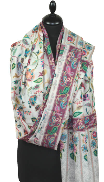Étole en cachemire blanc cassé à motifs floraux brodée – L’élégance raffinée d’un savoir-faire traditionnel