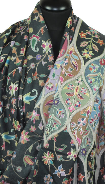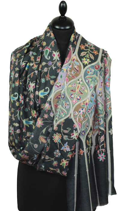Étole en cachemire noir à motifs floraux brodée – L’élégance raffinée d’un savoir-faire traditionnel