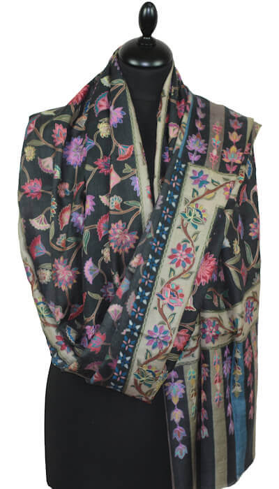 Étole en cachemire noir à motifs floraux brodée – L’élégance raffinée d’un savoir-faire traditionnel
