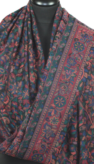 Étole en cachemire noir floral de style kani – Le prestige unique d’un savoir-faire traditionnel