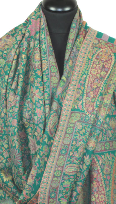 Étole en cachemire vert floral de style kani – Le prestige unique d’un savoir-faire traditionnel