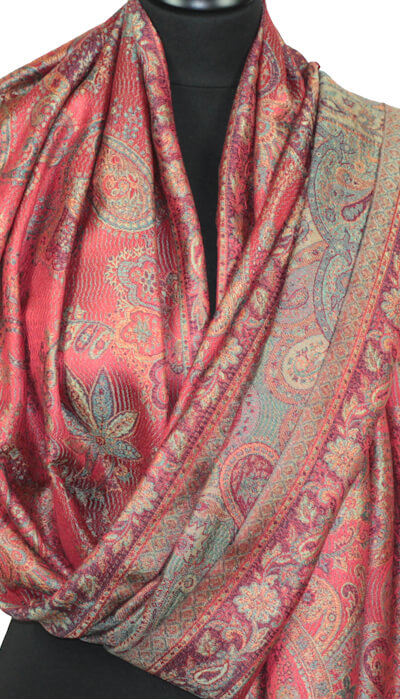 Cette étole en soie, aux subtiles nuances de corail, bleu et or, est idéale pour toutes les saisons grâce à ses propriétés thermorégulatrices naturelles. Elle offre un confort exceptionnel en toute occasion, qu'il s'agisse de journées estivales ou de soirées hivernales, en enveloppant votre corps de chaleur et de douceur, même lors des moments les plus frais.