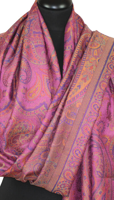 Cette étole en soie, aux subtiles nuances de fuchsia, orange et indigo, est idéale pour toutes les saisons grâce à ses propriétés thermorégulatrices naturelles. Elle offre un confort exceptionnel en toute occasion, qu'il s'agisse de journées estivales ou de soirées hivernales, en enveloppant votre corps de chaleur et de douceur, même lors des moments les plus frais.
