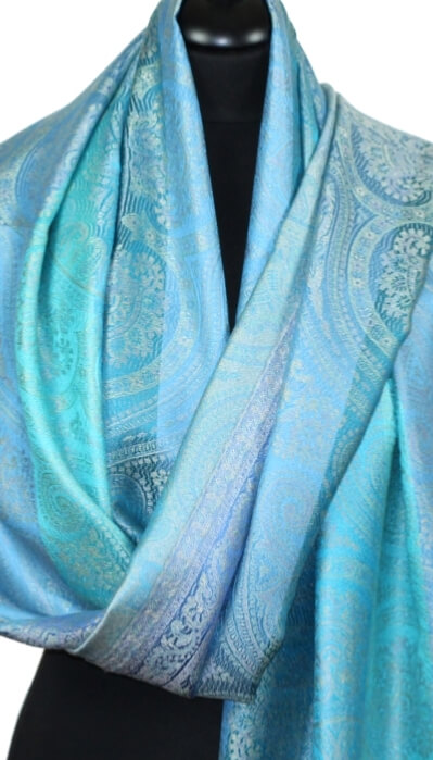 Étole en Soie Turquoise, Bleu et Vert – Artisanat Indien Intemporel, Légèreté et Douceur Naturelle